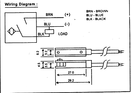 - Wiring: Brown (+ve), Blue (Gnd)